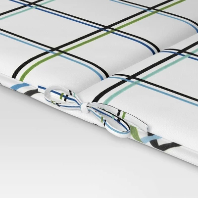 Warm up under the sun on a beach or poolside in absolute comfort with this Outdoor Chaise Cushion from Room Essentials™. Made from recycled polyester material, the tufted cushion has polyurethane foam filling for comfy lounging and knife edge finishes that create crisp corners and a modern appearance. Designed with attached fabric ties to ensure a snug and appropriate fit, the chaise cushion boasts a fade-, UV-, weather-, and water-resistant design to promote years of use.