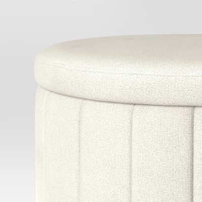 Add a stylish and modern seating spot to your home with the Folding Double Storage Bench from Room Essentials™. This oval bench features a slatted-like design around the sides for an appealing look. It comes with storage space to help keep your blankets, pillows, magazines and other essentials organized. Set on a wooden frame, this upholstered bench offers comfortable seating in your living room, study area, as dorm furniture, or any other space.