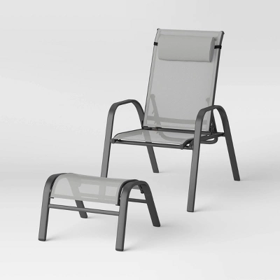 Create memories enjoying conversation with a loved one using this Five-Piece Adjustable Back Patio Chat Set from Room Essentials™. This five-piece patio chat set includes two adjustable-back chairs, two ottomans and one table to help create a complete relaxation spot. The chairs with arms feature a headrest to help provide complete support while the ottomans provide the perfect spot to rest your feet. Designed in gray, this patio furniture set goes well with a range of home decor styles and palettes, and withstands outdoor elements with their weather- and rust-resistant design.