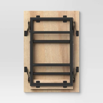 Accent your dorm with the simple yet functional Adjustable Height Dorm Folding Table from Room Essentials™. This rectangle table is designed with a black metal frame that complements the wooden tabletop for an elegant look. It features an adjustable height to meet your everyday needs and a foldable design for convenient storage when not in use.