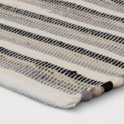 2’6″x4′ Handloom Striped Woven Accent Rug Black/Gray – Room Essentials™: Entryway Rug, Indoor Use, Rug Pad Recommended