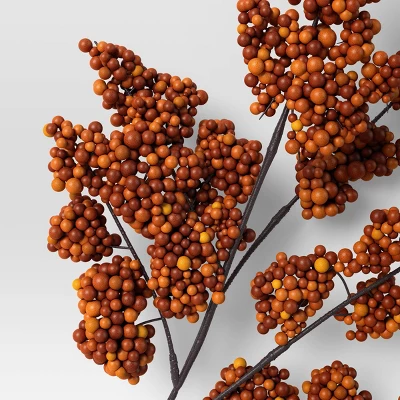 Bring natural beauty to your home without the need for any upkeep with this Artificial Berry Stem from Room Essentials™. This 20-inch stem features a faux foliage of berries on multiple branches for a gorgeous look that blends well with a variety of decor styles. Perfect for use as a vase filler or table centerpiece, the artificial berry stem can be used for year-round decoration.