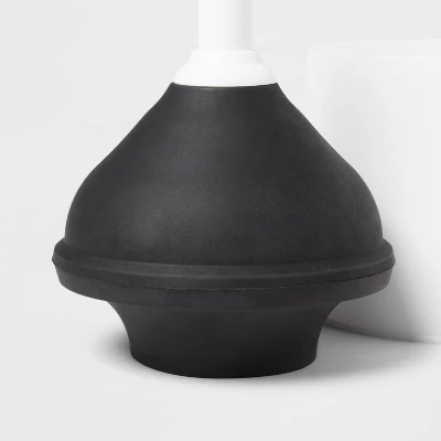 Easily unclog toilets in your home with the help of this Plunger from Room Essentials™. Made from BPA-free plastic, this toilet plunger is designed with a suction cup to easily pull out the blockage and dislodge the waste material. Showcasing a sleek design in white with a black plunger head, this toilet plunger comes with a white holder for discreet storing in a cabinet or corner in your bathroom.